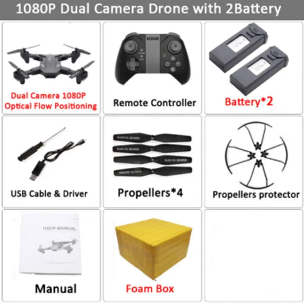 Функции: 3D водопад, Аэрофотосъемка, камера, передняя/задняя, FPV, режим датчика G, режим жестов, Безголовый режим, однокнопочный автоматический возврат, позиционирование оптического потока, замедление, ускорение, влево или вправо, вверх или вниз, waypoint и WiFi соединение