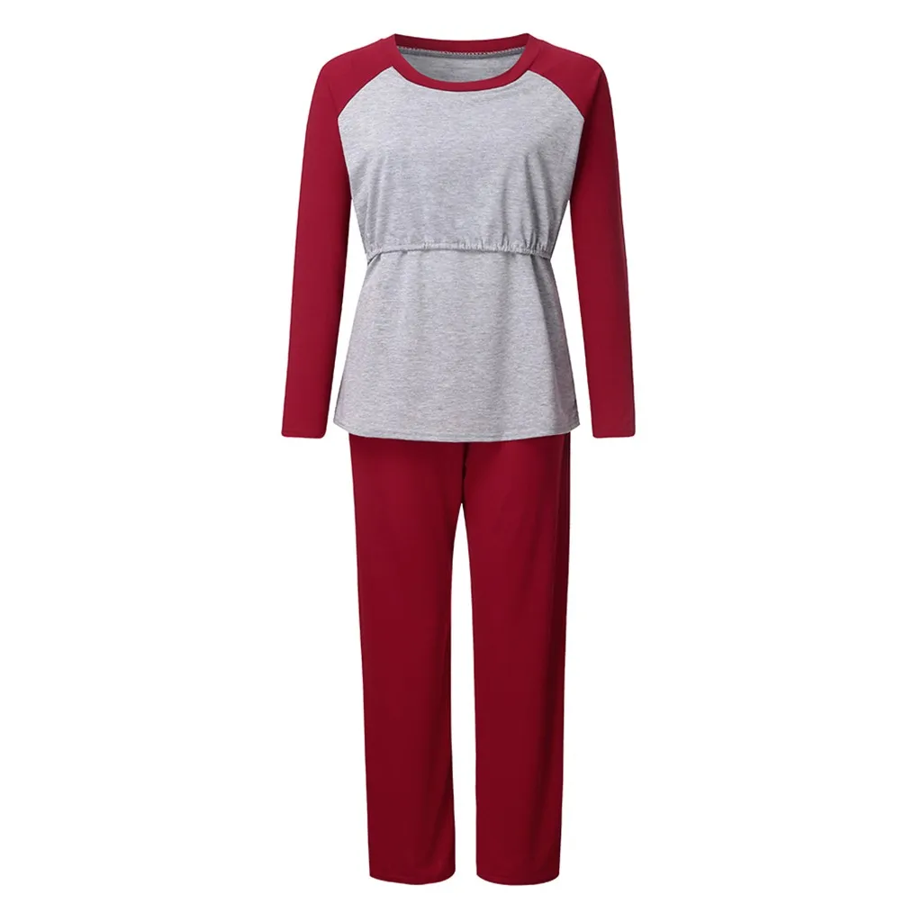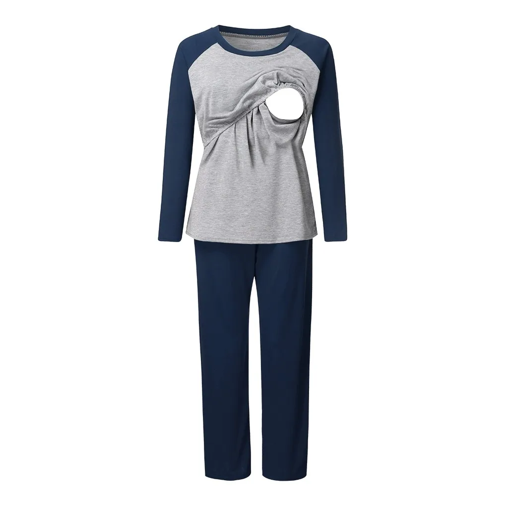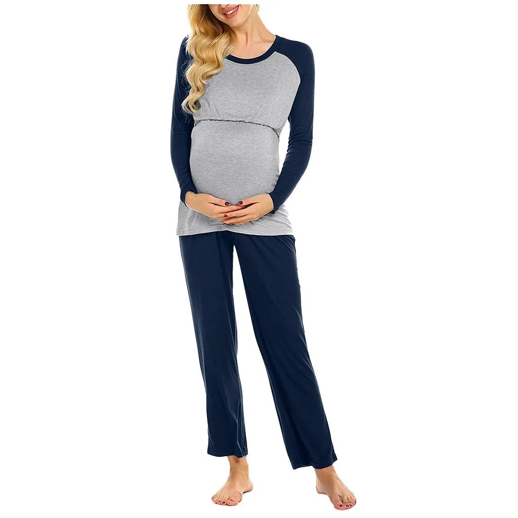 Футболка с длинными рукавами для беременных и кормящих мам, топ + регулируемые штаны, Пижамный комплект для домашнего использования, gestante 40 *, 2019