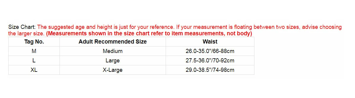 | Размер на бирке. | Взрослый рекомендуется Размеры | Обхват талии |