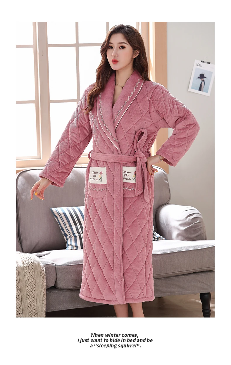 Отзывы о Толстая стеганая Ночная рубашка Женский Халат фланелевый Дамский зимний