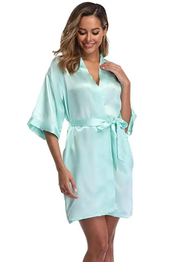 Отзывы о Халат-кимоно Женский однотонный атласная простота пижама ярко-розовый цвета