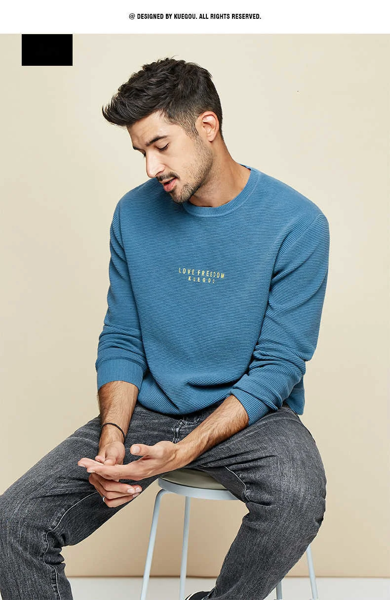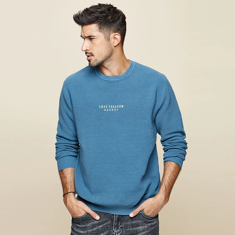 Отзывы о KUEGOU 2022 Весна 100% хлопок вышивка черный свитер мужской пуловер Повседневный