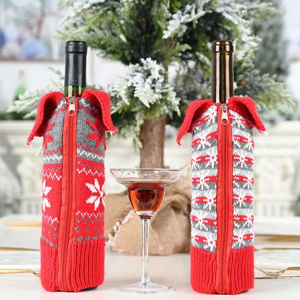 Отзывы о Вязаный чехол для бутылки вина на молнии с изображением рождественского