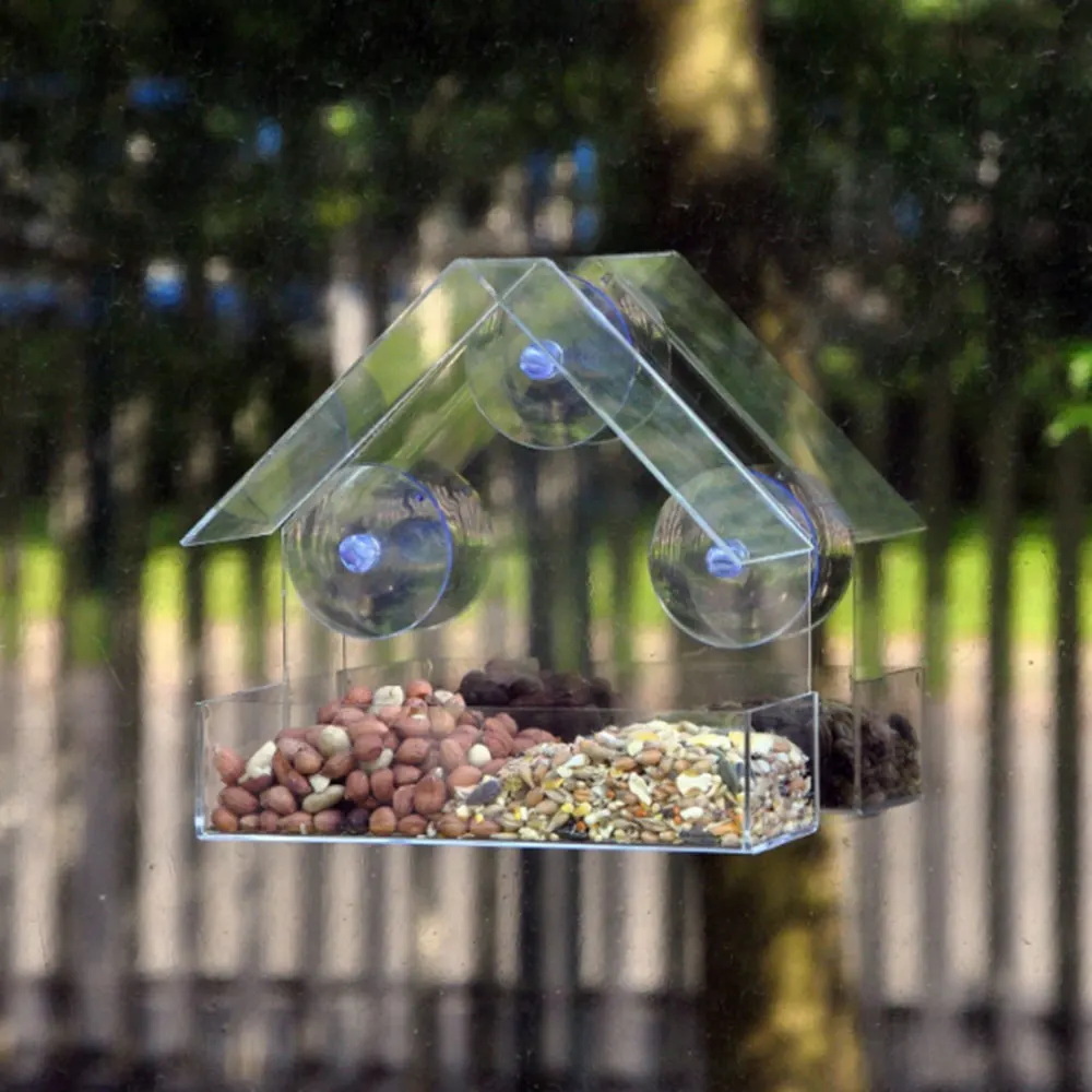 Прозрачный дизайн позволяет легко смотреть на питание птиц.