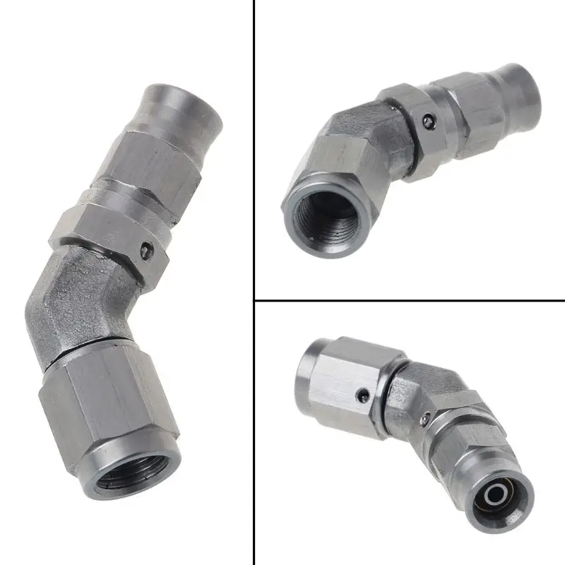 AN -3 (AN3) Нержавеющая сталь многоразовые 45 градусов PTFE шланг фитинг, 360 градусов поворотный конец с фиксатором. Этот фитинг будет использоваться с нашим 200 сериями плетеных фторопластовых шлангов. Другие соответствующие фитинги, адаптеры и подходящий шланг для этого элемента доступны в нашем магазине eBay.