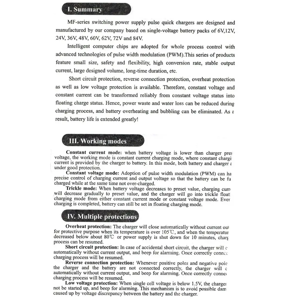 2,Stable performance,stopped automatic when charge full,pulse auto revive and maintenance battery;