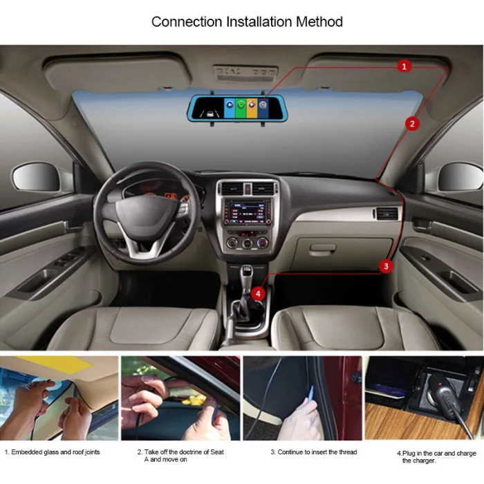 1.HD solution, full glass lens, 10 inch IPS screen, flat mirror design, 3D stereo collision acceleration sensor.