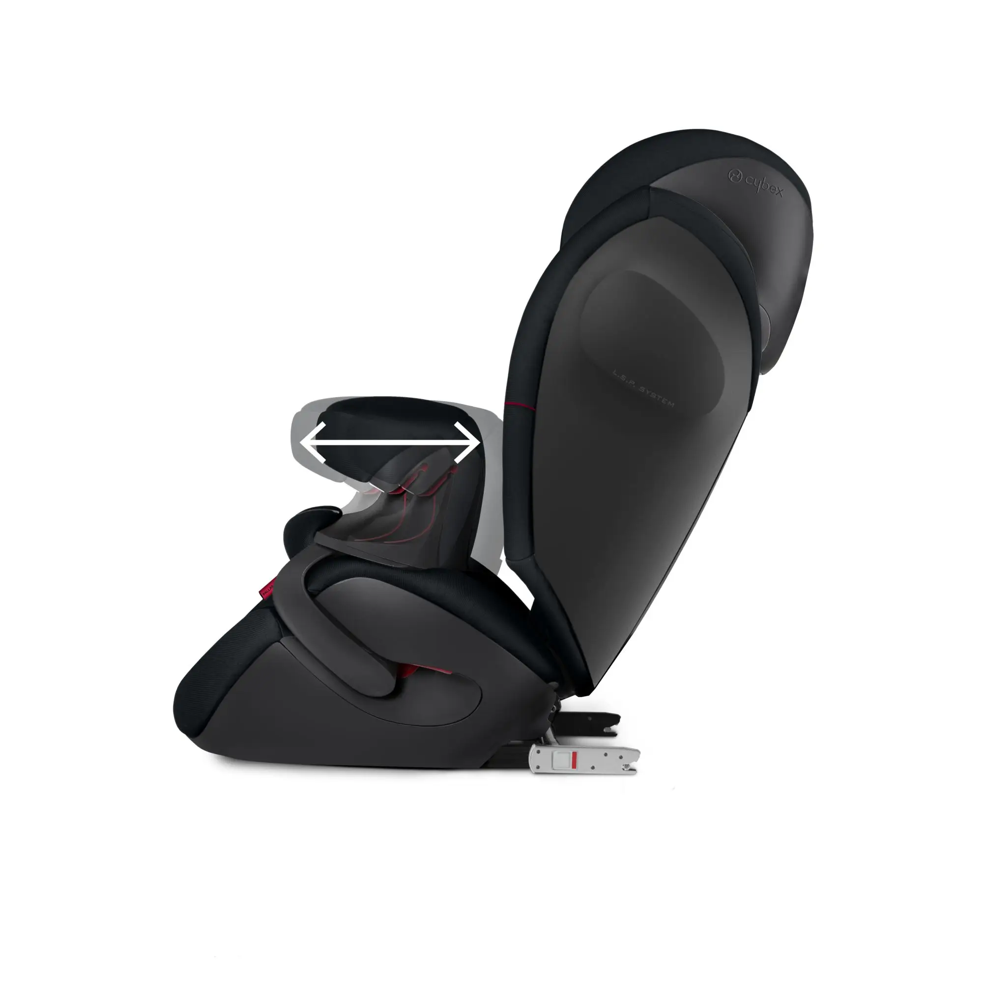Особенностью автокресла Cybex Pallas M-Fix является усиленная боковая защита (L.S.P. ), которая увеличивает на 25% безопасность малыша при боковых ударах.