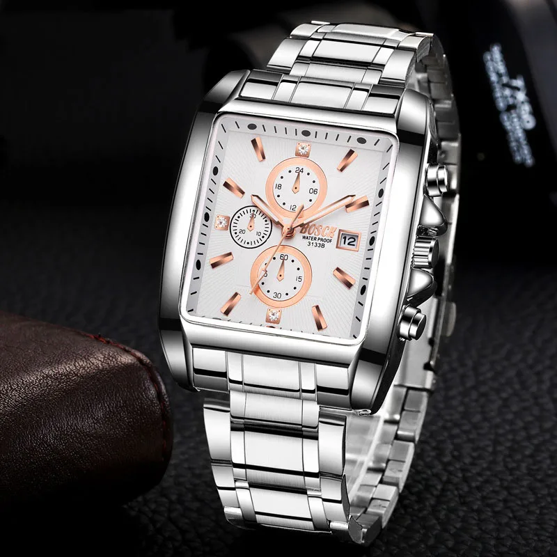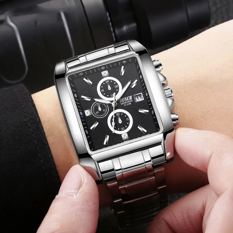 Отзывы о Мужские часы с квадратным циферблатом BOSCK мужские спортивные кварцевые стальным
