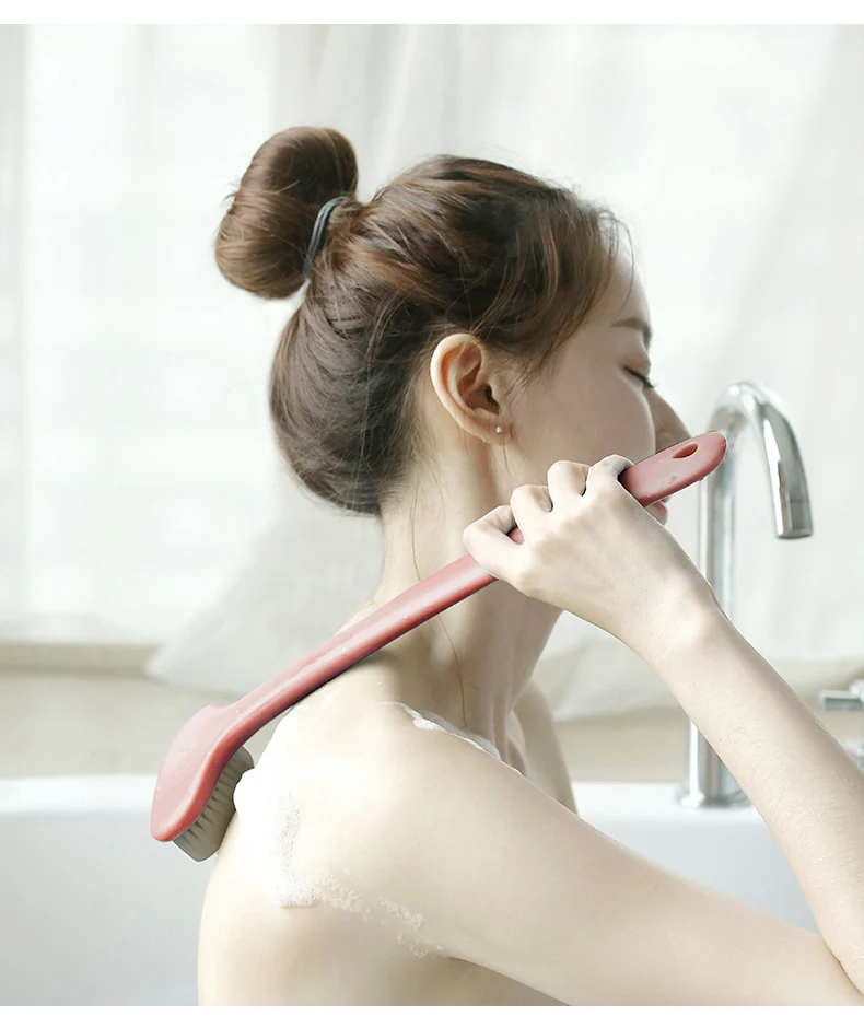 Нормальное Купание не может глубоко очистить спину, потому что некоторые места трудно достичь. Это приведет к накоплению жировой и роговой кожи и приведет к закупорке пор и зуду кожи. Длинная щетка для ванны может помочь эффективно удалить жир, роговой и способствует оптимальному здоровью кожи.
