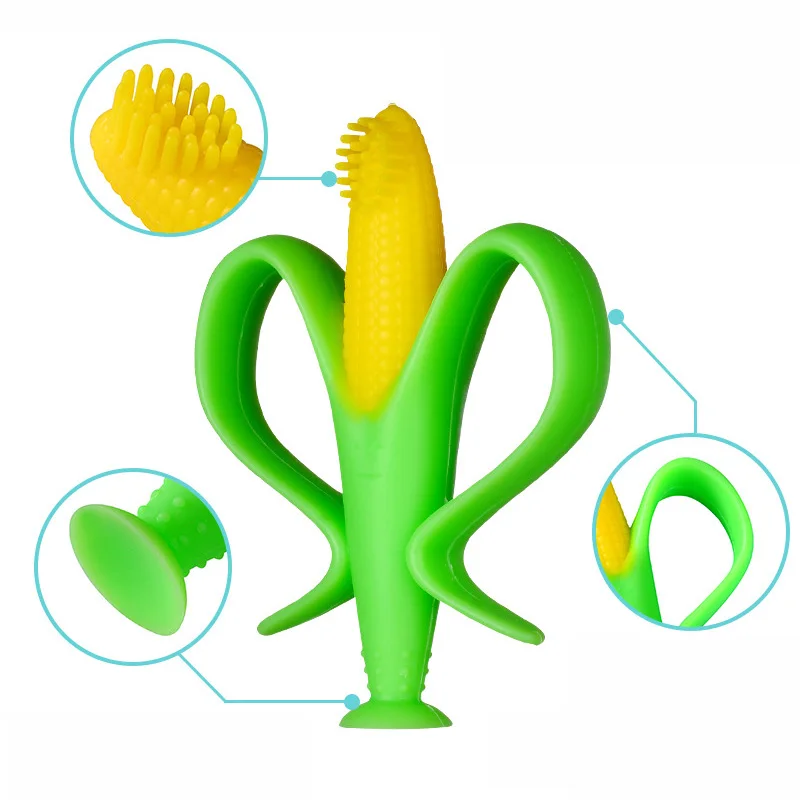 Детская силиконовая учебная зубная щетка BPA бесплатно форма кукурузы безопасный ребенок прорезыватель жевательные игрушки Прорезыватель кольцо подарок для младенца Детская, жевательная
