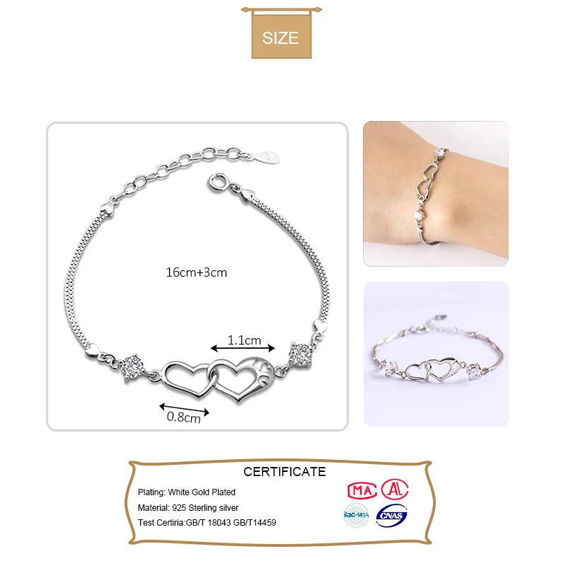 Отзывы о Браслет с сердечками из стерлингового серебра 925 пробы браслеты для девочек