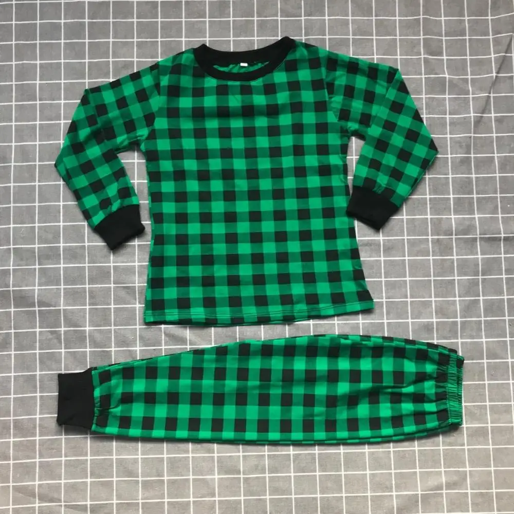 Оптовая продажа; Вязаная хлопковая одежда в черно-зеленую клетку для девочек; одинаковые рождественские пижамы в красную и черную клетку; Детские пижамы в стиле буйвола