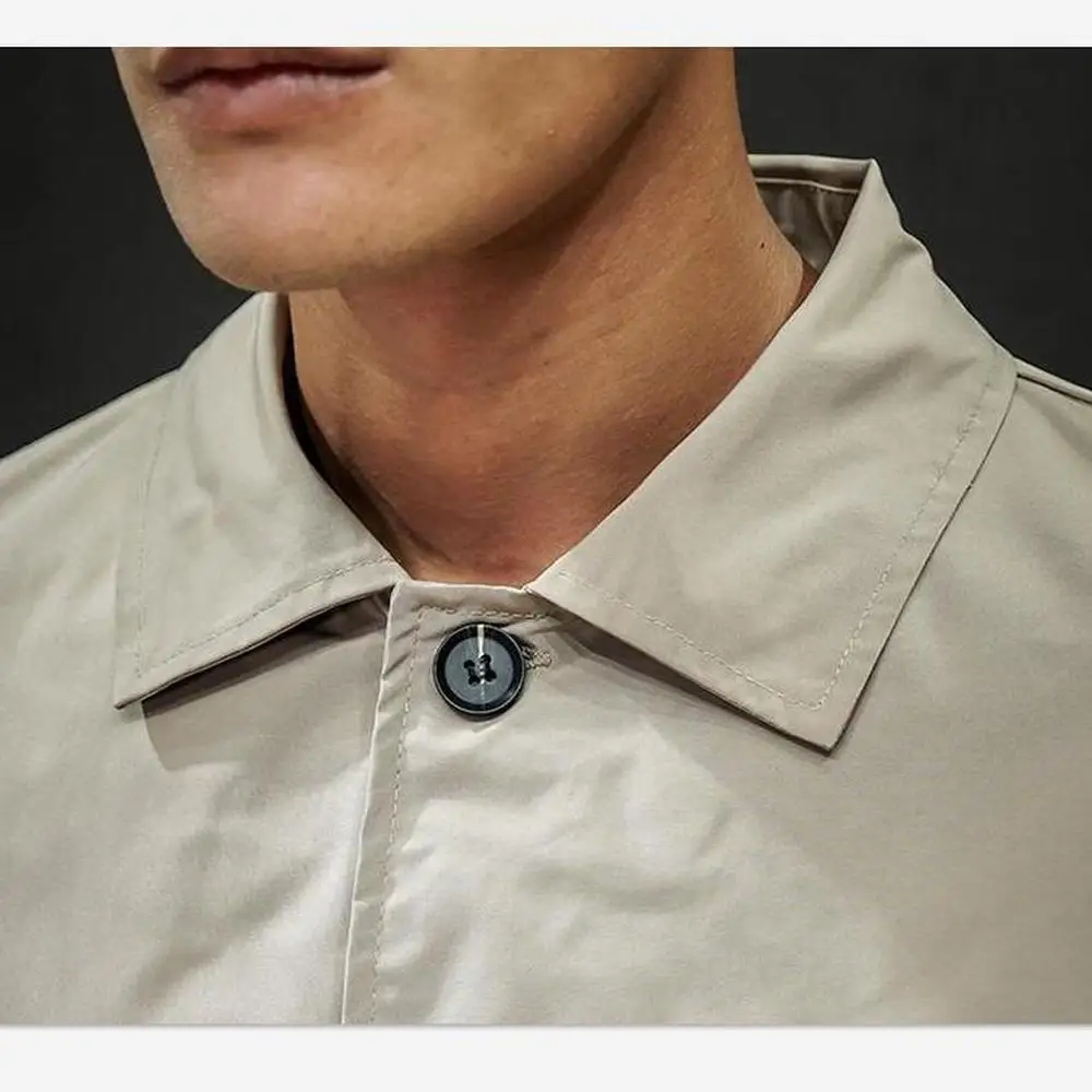 Отзывы о Мужская одежда 2019 однобортный Тренч средней длины мужское однотонное пальто