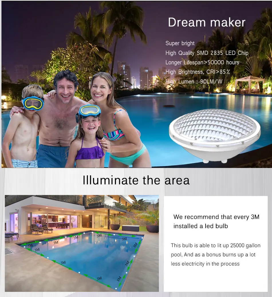 1 шт. x светодиодный плавательный бассейн светильник AC12V