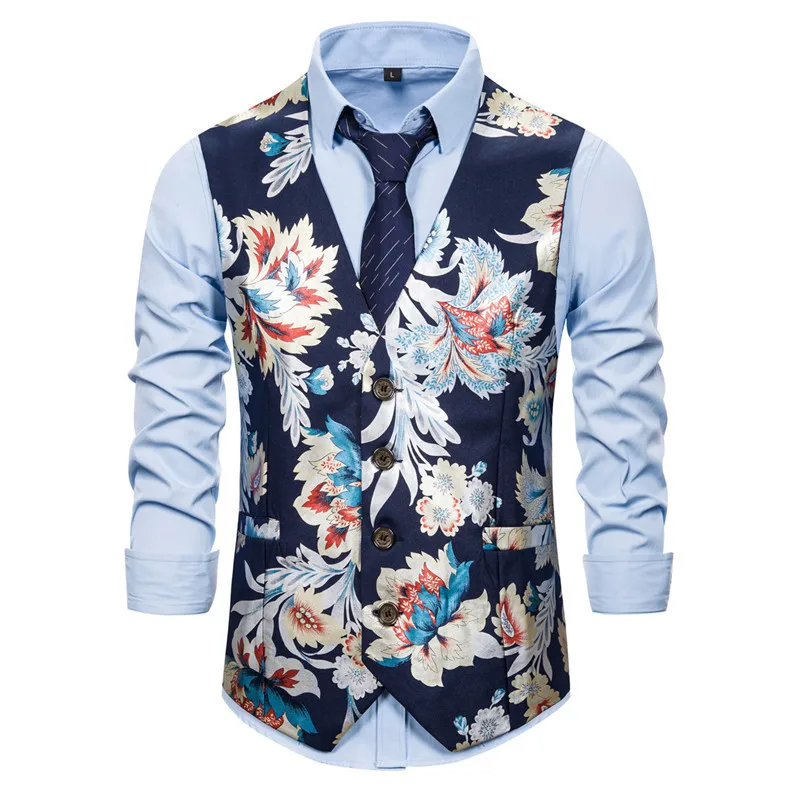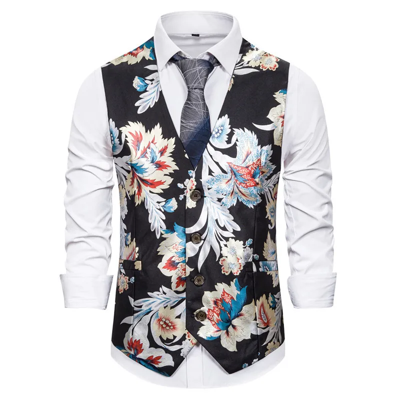 Отзывы о Мужское хипстерское платье с V-образным вырезом черное Цветочное смокинг жилетом