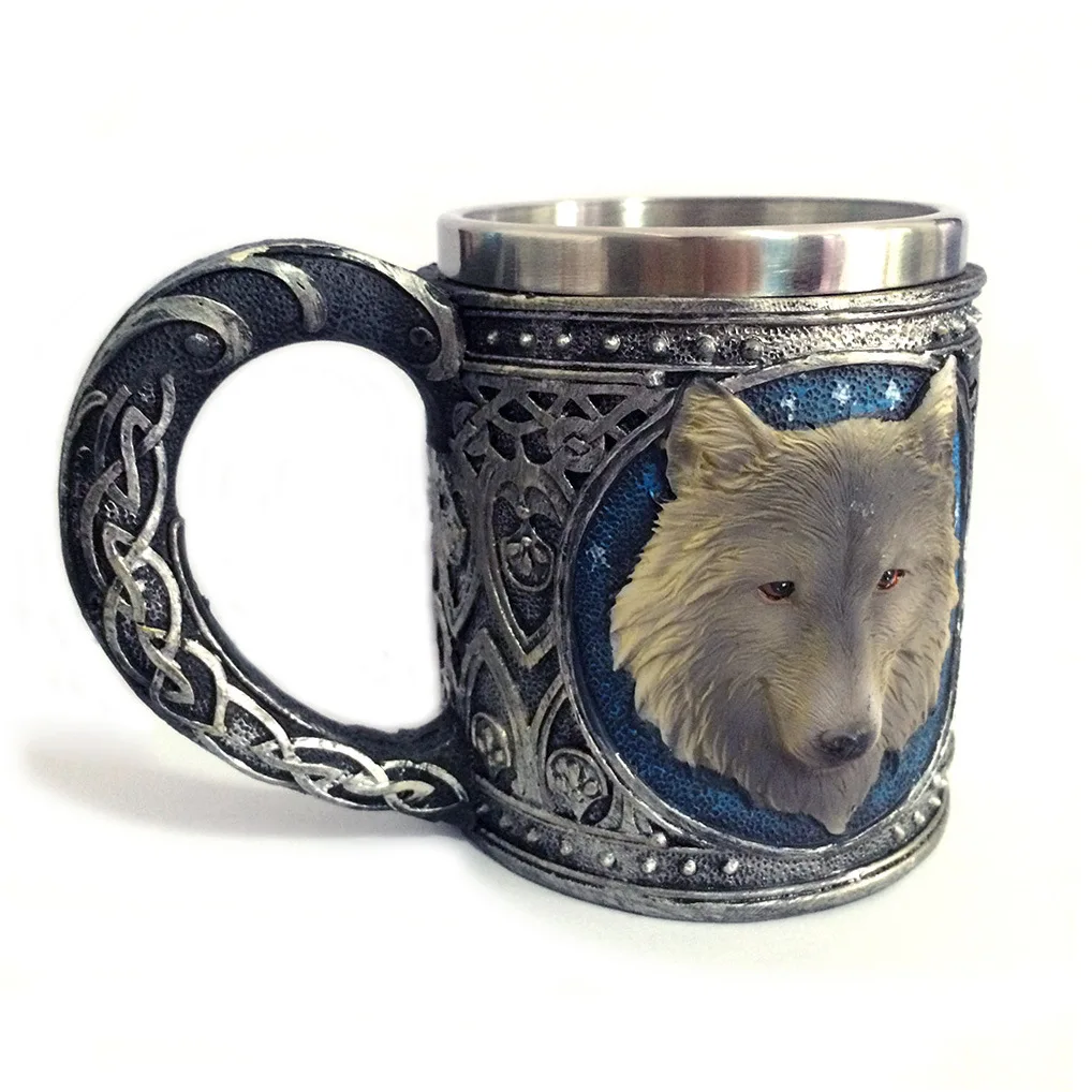 Отзывы о Кружка для пива из нержавеющей стали с объемным изображением волка бокал игр