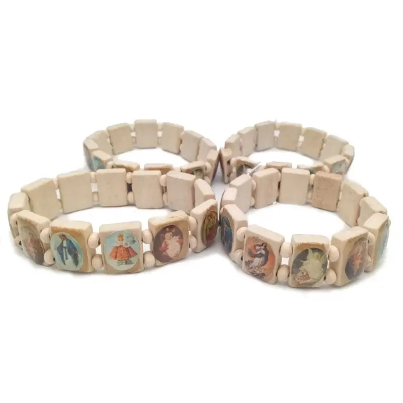 4 шт. католические украшения христианские деревянные принадлежности икона эластичный браслет из бусин подарок