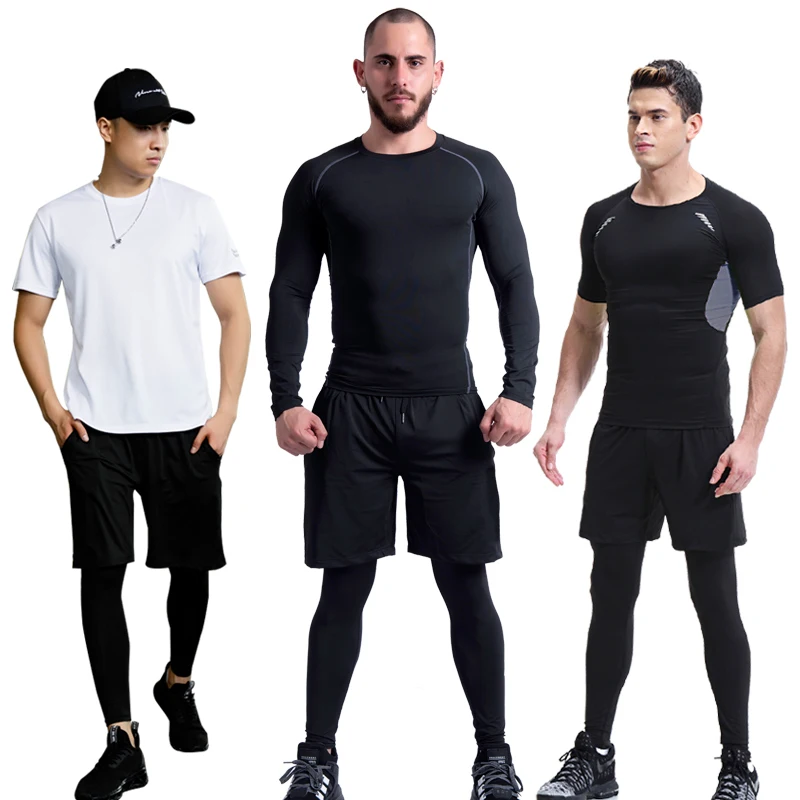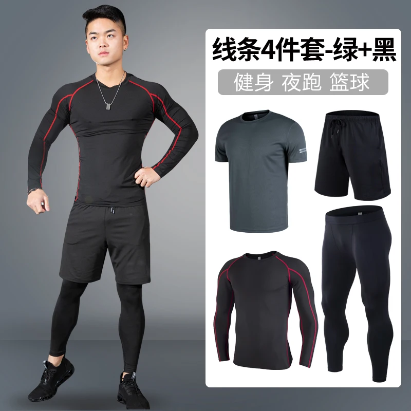 Отзывы о 4 шт./компл. Для мужчин спортивный костюм тренажерный зал Фитнес сжатия одежда для
