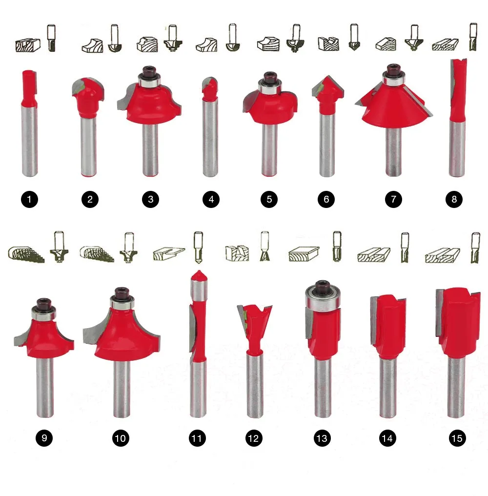 Option1: 1,4 шт. различные фрезы Option2: 1,10 шт. цельные фрезы Option3: 1. Деревообрабатывающий электрический триммер только Option4: 1. Деревообрабатывающий электрический триммер 2,4 шт. фрезы