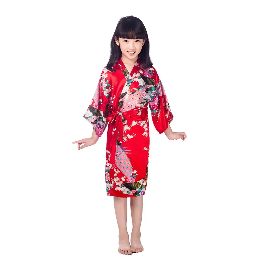 2017 банный халат для малышей, халаты для девочек, шелковое кимоно, банные халаты, Детские пеньюары, ночная рубашка, кимоно с цветочным рисунком