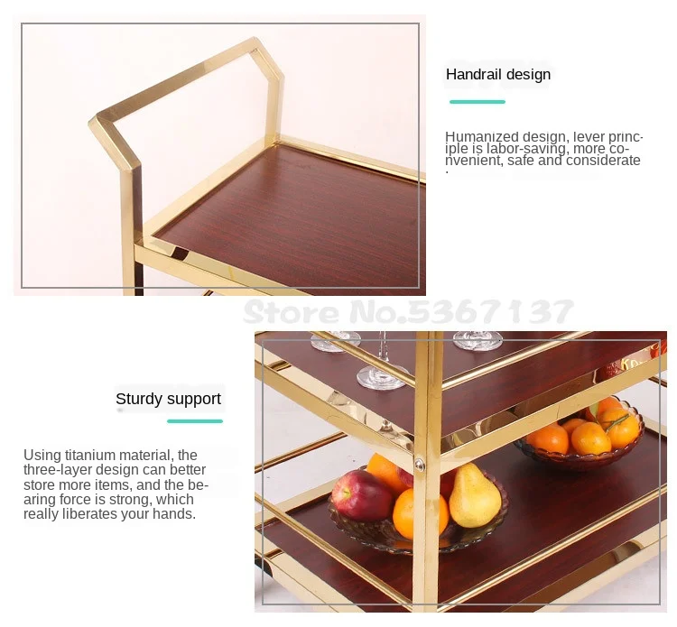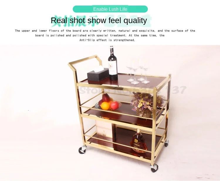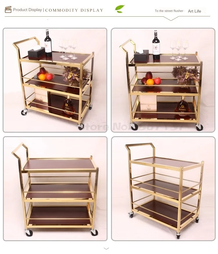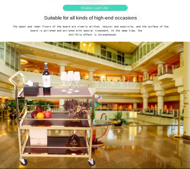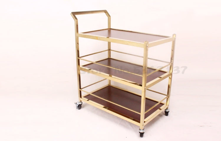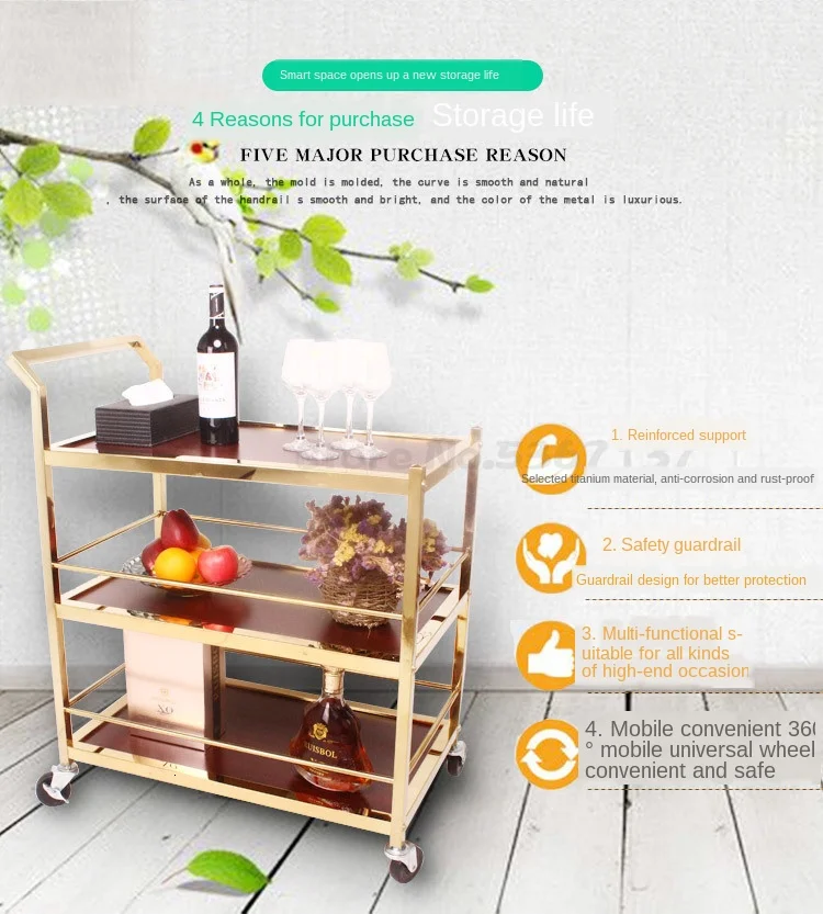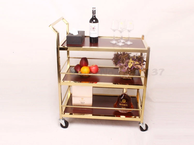Тележка для ресторана отеля KTV, коммерческий автомобиль для доставки вина, трехэтажная титановая Тележка из нержавеющей стали для отеля