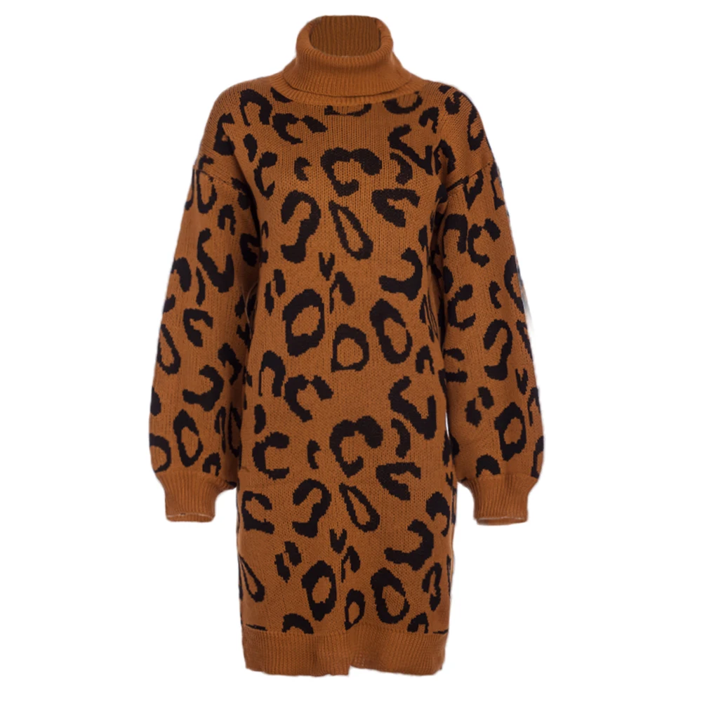 Отзывы о Платье для тенниса женское леопардовое трикотажное платье свитер с длинными