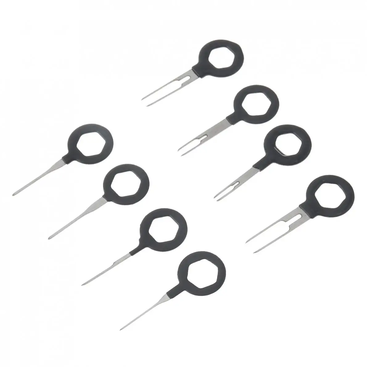 -Различные инструменты для удаления клемм. В комплект входит 4 одноконтактных экстрактора, 4 двухконтактных экстрактора. Поставляется с брелком, удобно носить с собой.