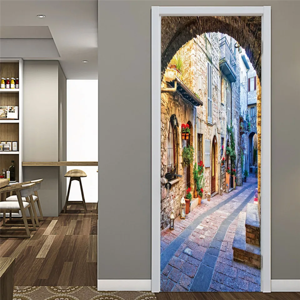 Отзывы о 2Pcs/Set City Scenery Door Stickers Home Decor Living Room Bedroom Mural Adhesive Wallpaper Removable Decals Poster deursticker | Дом и сад