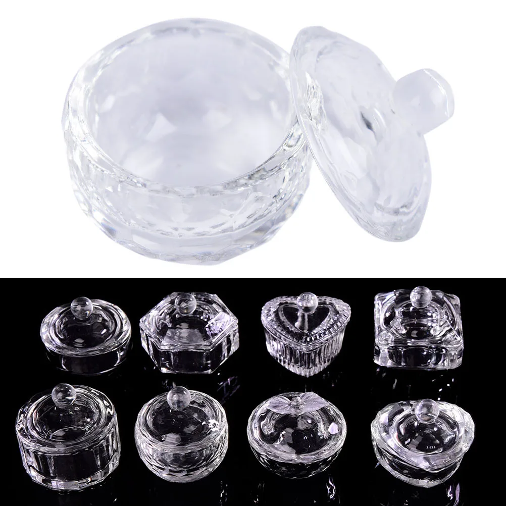 Заполните акриловую жидкость/ацетон в Хрустальное Стекло dappen Блюдо/чашка для акрилового дизайна ногтей.