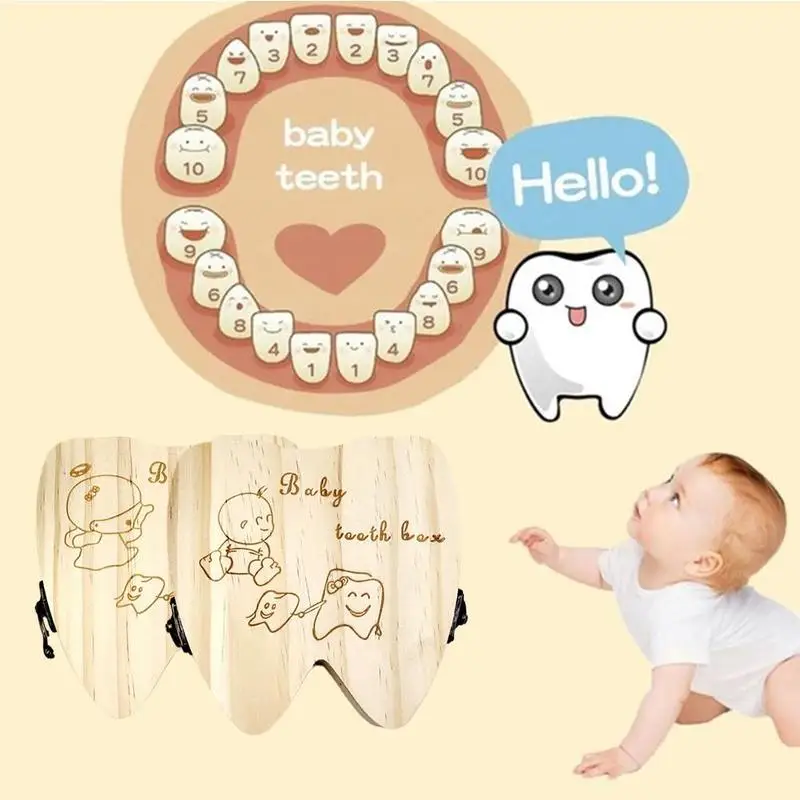 Детская коробка для зубов маленький и милый деревянный Сувенирный чехол для молочных зубов детские подарки для роста детский ящик для хранения зубов