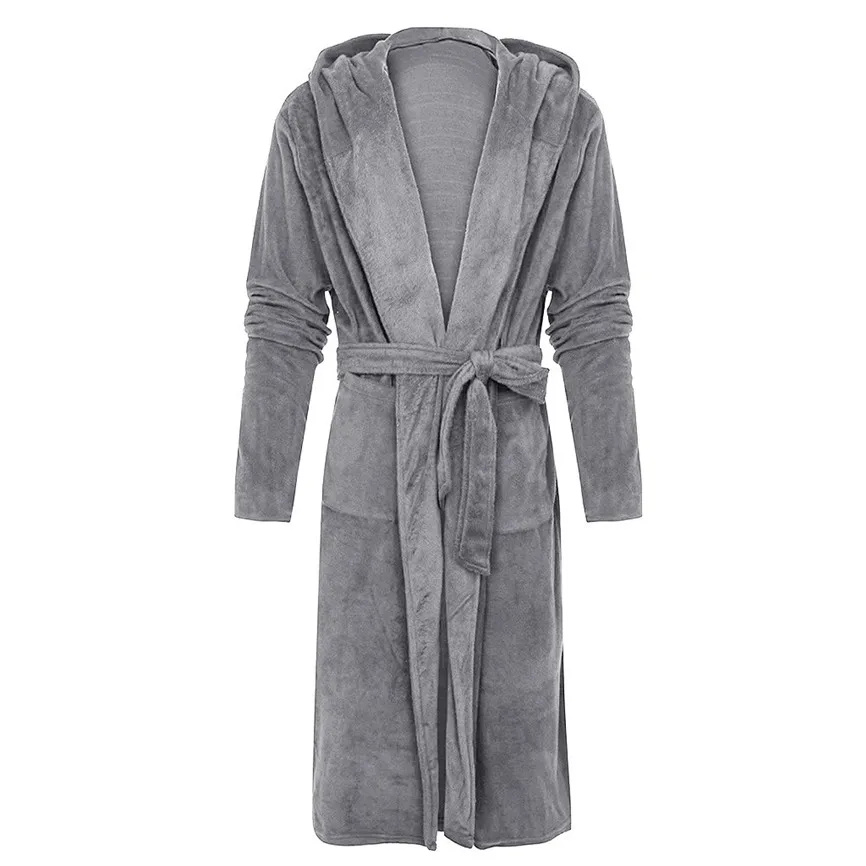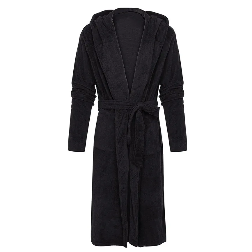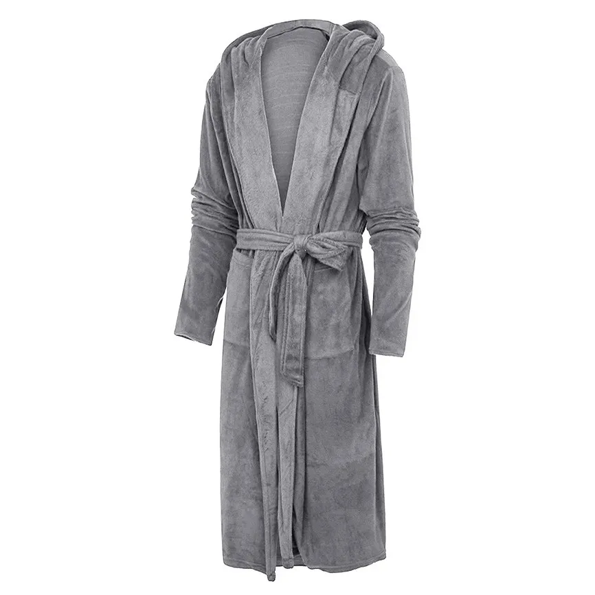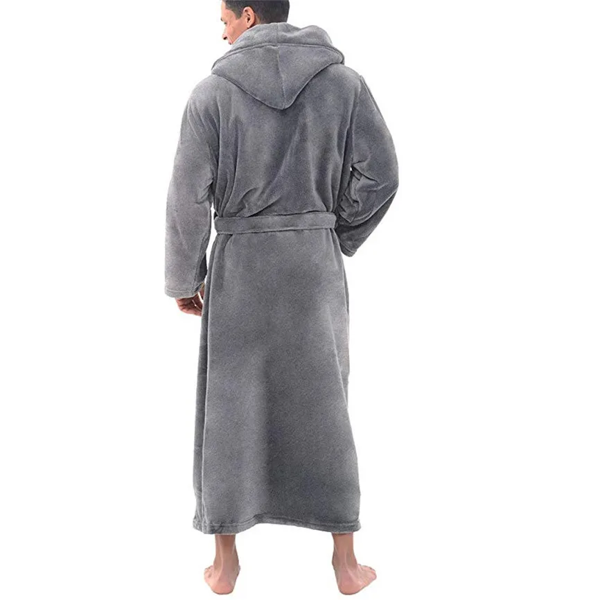 Men's Winter Lengthened Plush Shawl Bathrobe Home Clothes Long Sleeved Robe Coat