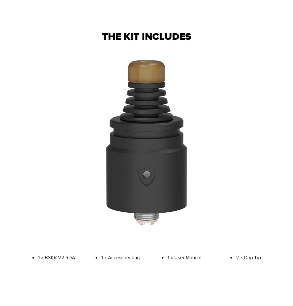1 x BSKR V2 RDA 1 x Accessory bag 1 x User Manual 2 x Drip Tip