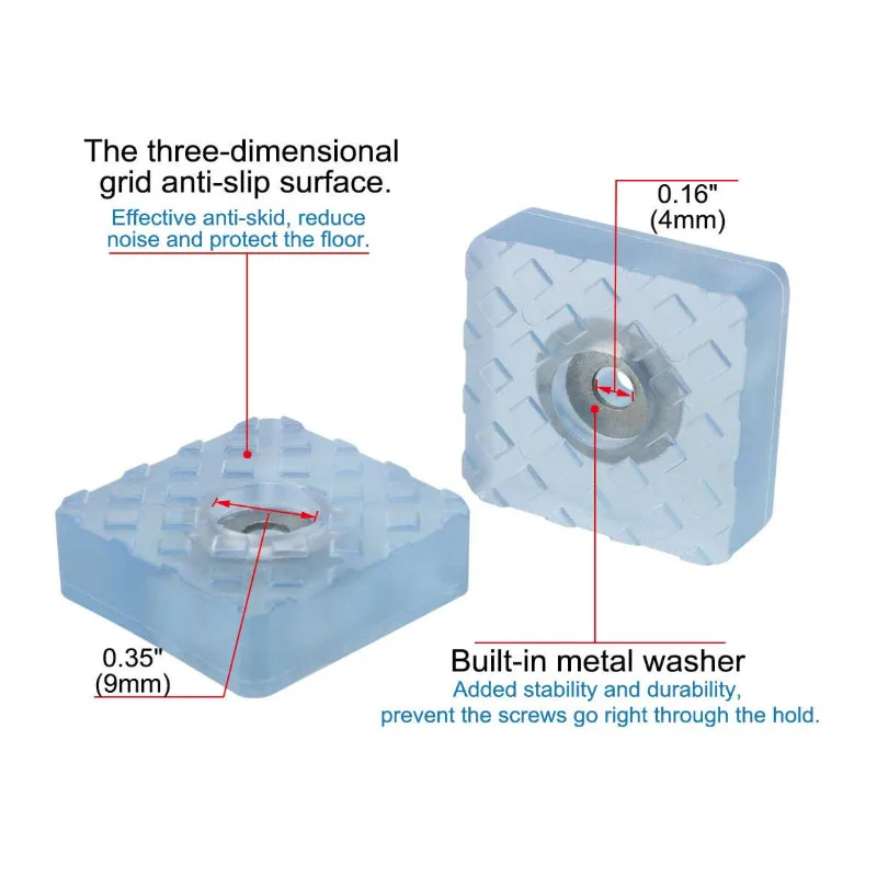 Резиновые ножки могут защитить ваши красивые деревянные, керамические плитки и полы линолеума от царапин и сохранить ваши мебельные ножки. Резиновые ножки используются для мебели, стульев, столов, столов, шкафов, шкафов, диванов, стульев, журнальных столиков, ТВ-шкафов, книжных полок, цветочной полки и так далее. Особенности: 1. Защита-используется для грубой мебели, делает ее более гладкой, чтобы предотвратить царапины поверхности пола и сохранить баланс мебели, предметы на столе или шкафу не скользят легко. 2. Простота в использовании-Простота установки, более доступный и дольше, чем накладки. 3. Водонепроницаемость-эти резиновые ножки могут поднять высоту, чтобы мебель не попадала в воду. 4. Высокое качество-резиновые мебельные ножки с металлической шайбой очень плотные и имеют хорошую прочность на растяжение, очень устойчивы к деформации удара. 5. Хорошее соответствие-прозрачный синий резиновый коврик для ног подходит для украшения большей части мебели, делает вашу мебель и комнату более красивой и более комфортной. Технические характеристики: Название продукта: резиновая стопа Материал: Резина Посылка включает в себя: 20 x подставка для ног + крепежные винты