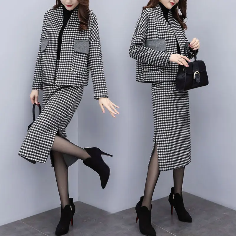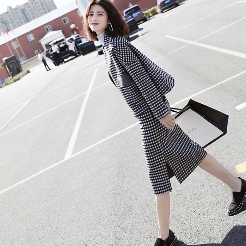 Отзывы о Офисный дизайнерский костюм на осень и зиму женский шерстяной клетчатый