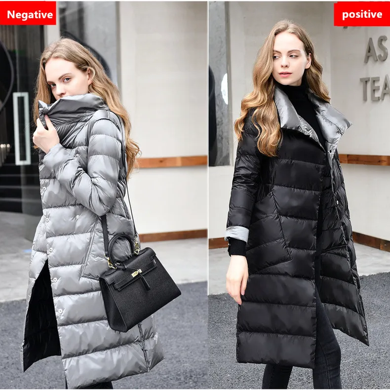 Отзывы о Зимнее женское длинное пальто OL темперамент длинный рукав воротник стойка