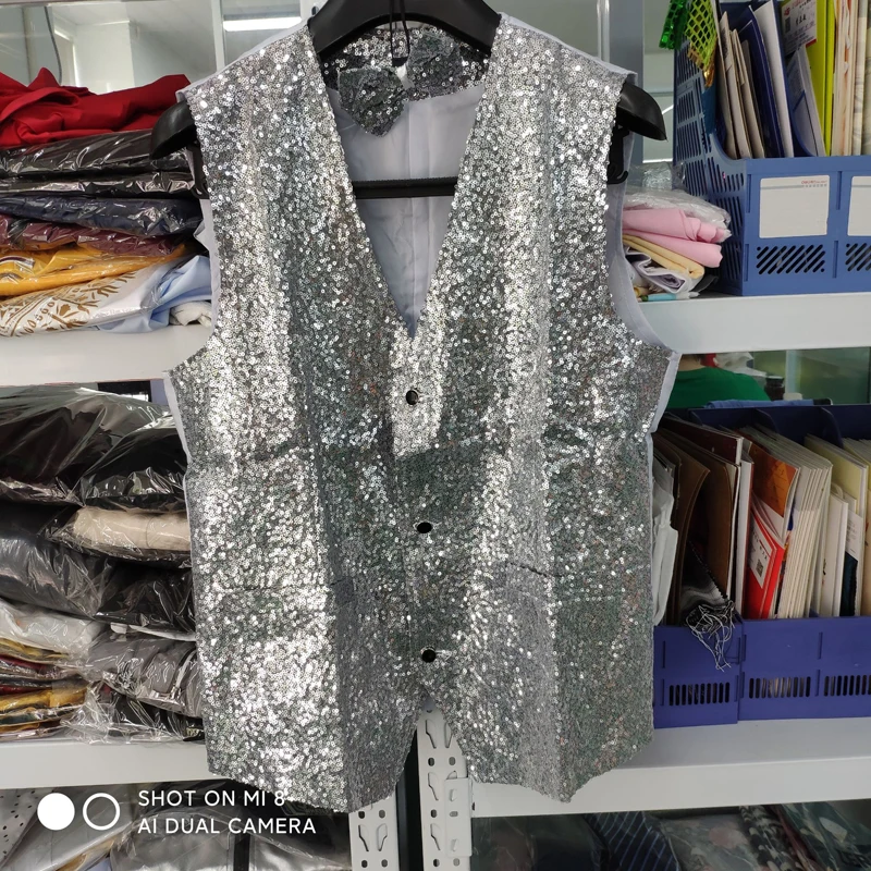 Отзывы о Блестящий мужской жилет с золотыми блестками Приталенный из 2 предметов