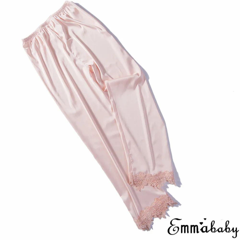 Отзывы о 2019 Женская шелковая атласная пижама штаны одежда для сна домашняя |