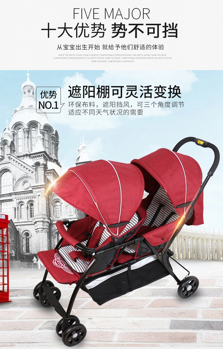 Отзывы о Легкая детская коляска-двойка с двойным сидением для младенцев две детские