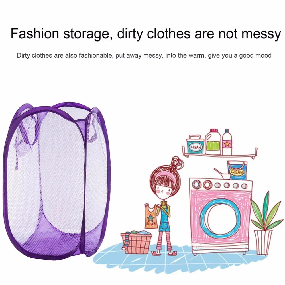 Отзывы о Складная практичная корзина для стирки одежды белья однотонная сетка хранения