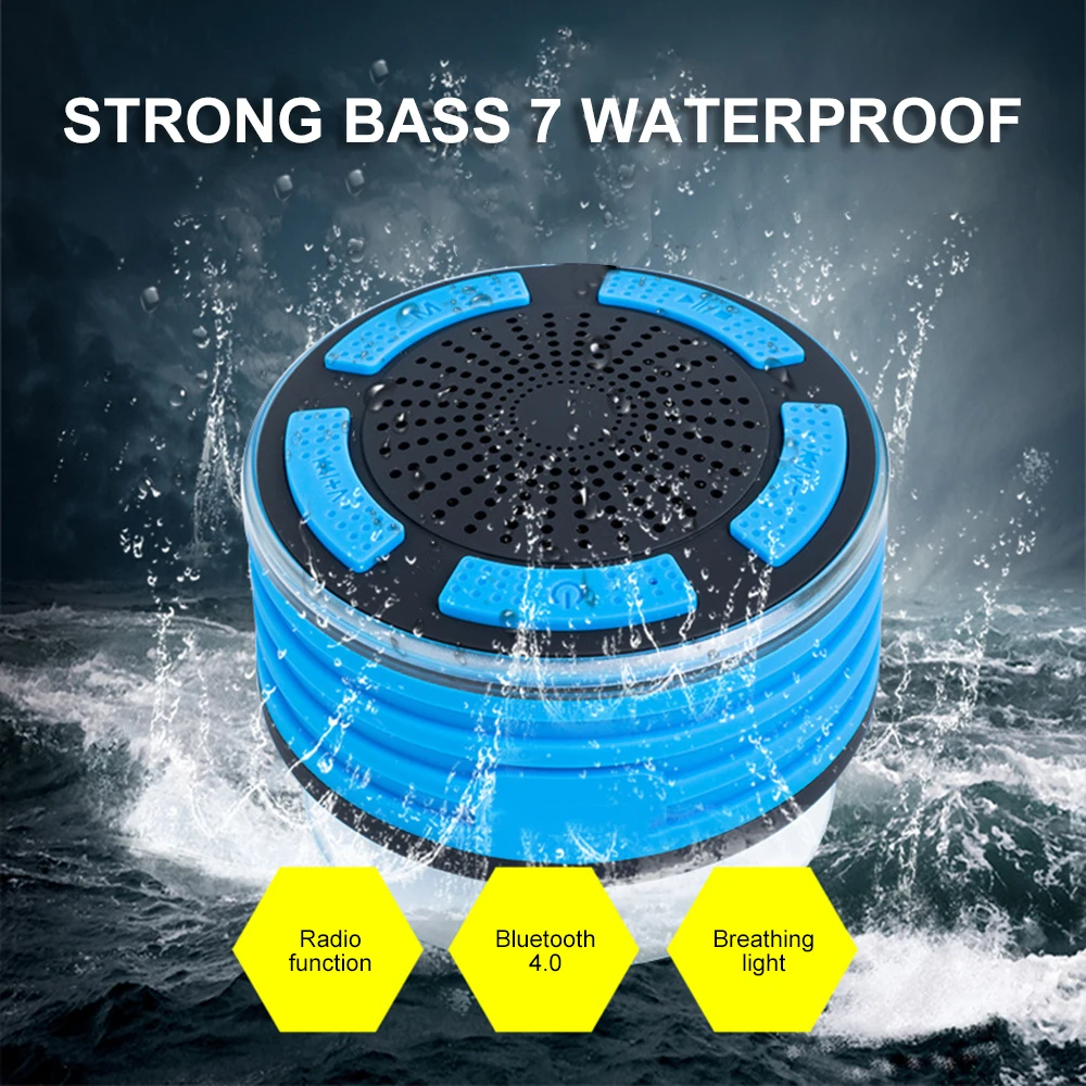 Водонепроницаемый динамик может показать вам красочный светильник, чтобы создать музыкальную атмосферу в темноте.