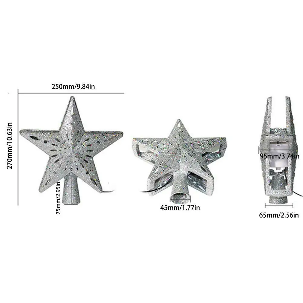 Особенности: 1. Украшение рождественской елки: светильник в форме звезды предназначен для полого использования с светодиодный-проектором внутри. Оправа звезд покрыта серебристым блеском, Добавляя мерцающее свечение к вашей рождественской елке и делая ваше Рождество уникальным. 2. Эффект освещения снежинки: Встроенный светодиодный вращающийся проектор будет иметь великолепный эффект снега. При необходимости вы можете отрегулировать направление проектируемого светильник. Пусть ваша Рождественская елка станет центром внимания общества. 3. Идеально подходит для Размеры: Размеры 25*27*9,5 см подходит для всех разные деревья, таким образом, вам не нужно беспокоиться о том, что его.4. Высокое качество: Изготовлен из экологически чистого и высококачественного ПВХ, изделие очень прочное и стабильное. Подходит для рождества, праздников, семейных танцевальных вечеринок, украшения торгового центра и т. д. 5. Хорошее обслуживание: если у вас есть какие-либо вопросы, пожалуйста, свяжитесь с нами. Наша команда известна своим первоклассным клиентомОбслуживание. Помните, мы здесь, чтобы помочь вам. Спецификация: Мощность: 4 Вт Источник: светодиодный светильник Материал: АБС-пластик Напряжение: AC100-240V Характеристики мощности:Правила США, европейские правила Мощность Длина шнура: около 2,4 метров Режим проекции: Включение-вращение Диапазон проекции: 2-5 квадратных метров Цвет:Серебро, золото Применимое место: только для использования в помещении Упаковка продукта: Нейтральная белая коробка Упаковочный лист: 1 * Снежинка проекционная лампа