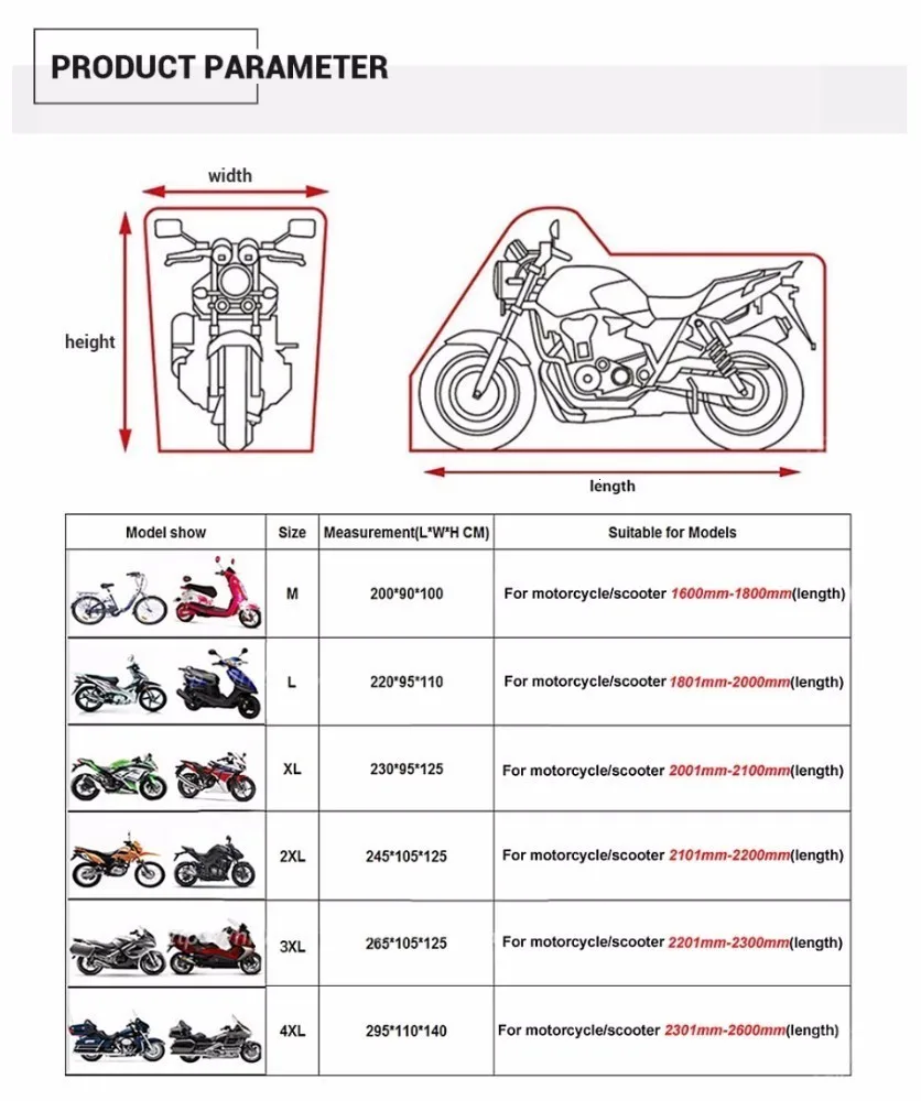 -Защищает ваш мотоцикл от солнца светильник, воды, птиц, деревьев, пыли и грязи