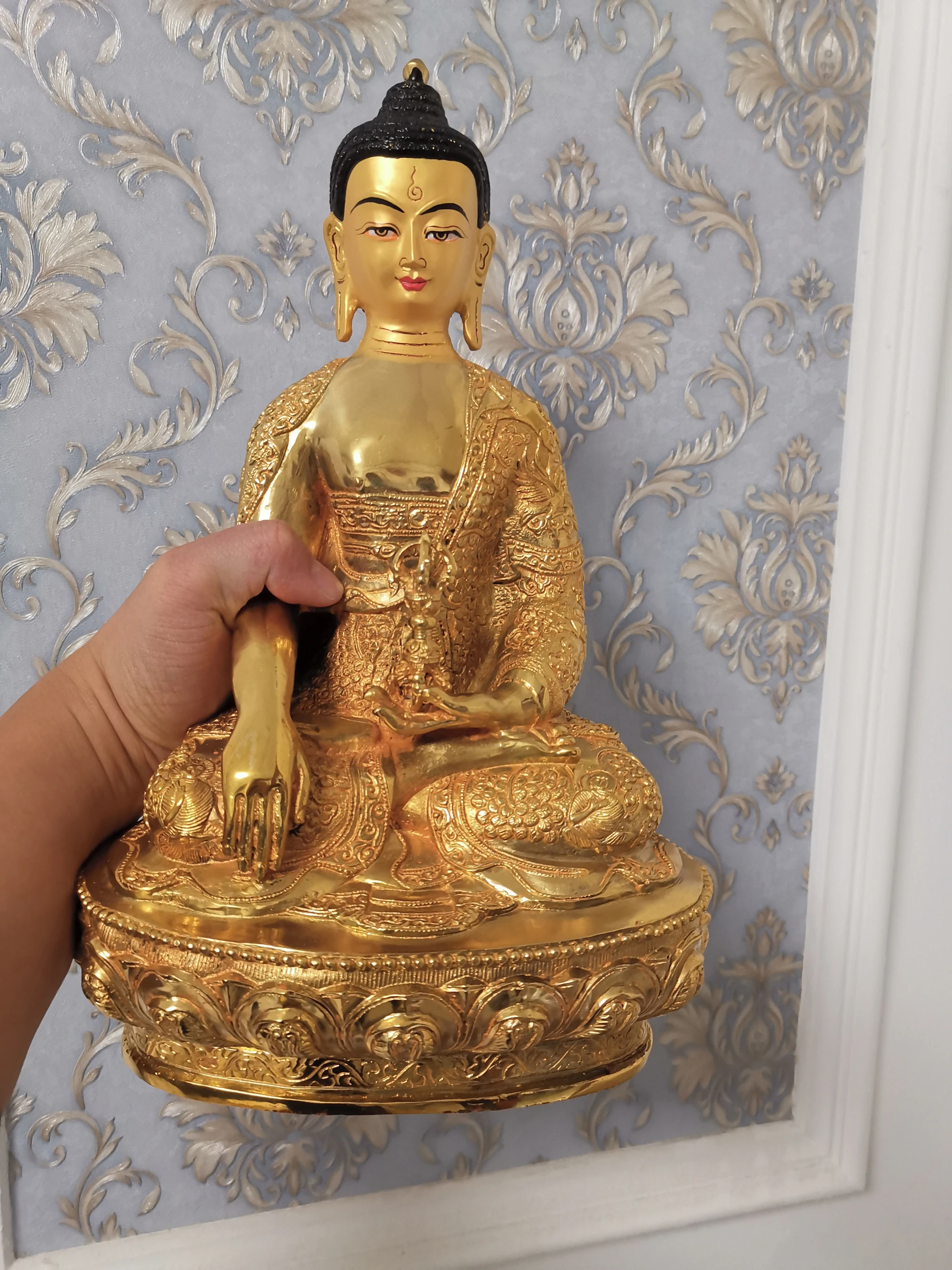 31 см Большой Будда буддийский домашний храм непальский Тибет буддизм Золотая позолота Сейф удача Ваджра митукпа статуэтка Будды из латуни