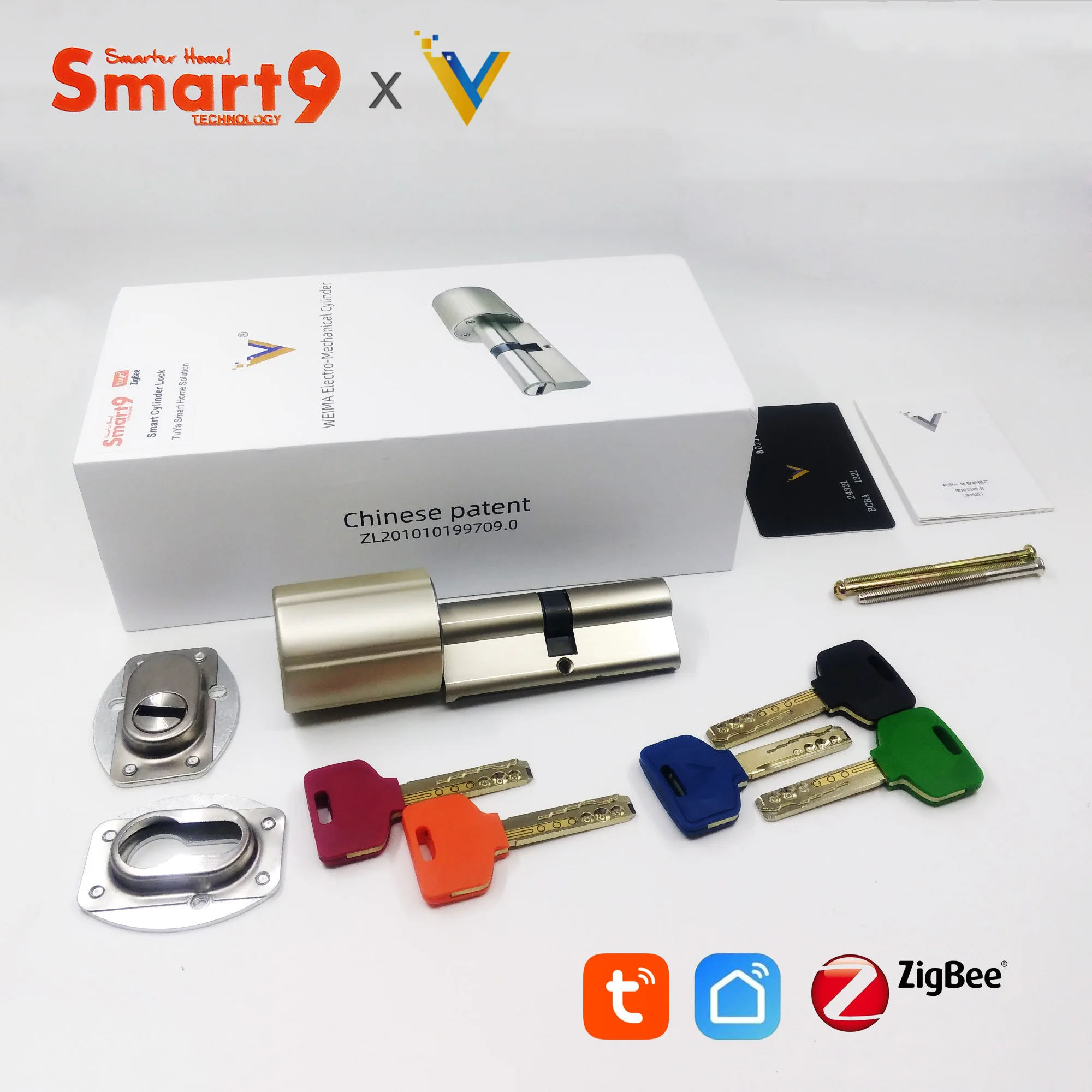 Smart9 ZigBee Smart Lock Core цилиндр работает с TuYa ZigBee Hub, питание от аккумулятора и чип-зашифрованные ключи питаются от TuYa