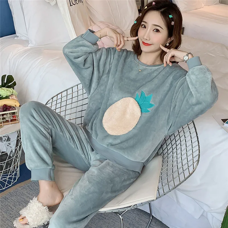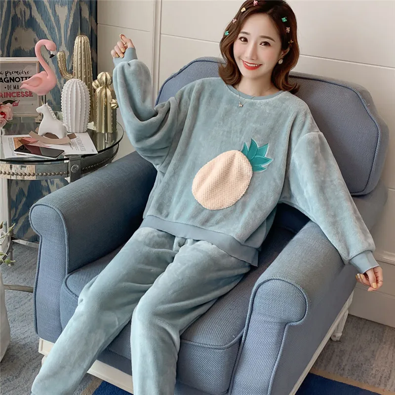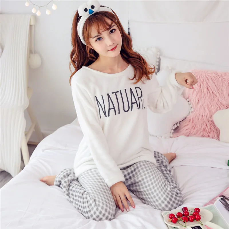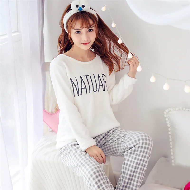 Пижамный костюм топ + брюки для женщин с длинным рукавом Фланелевая рубашка брюки пижамы ночное белье