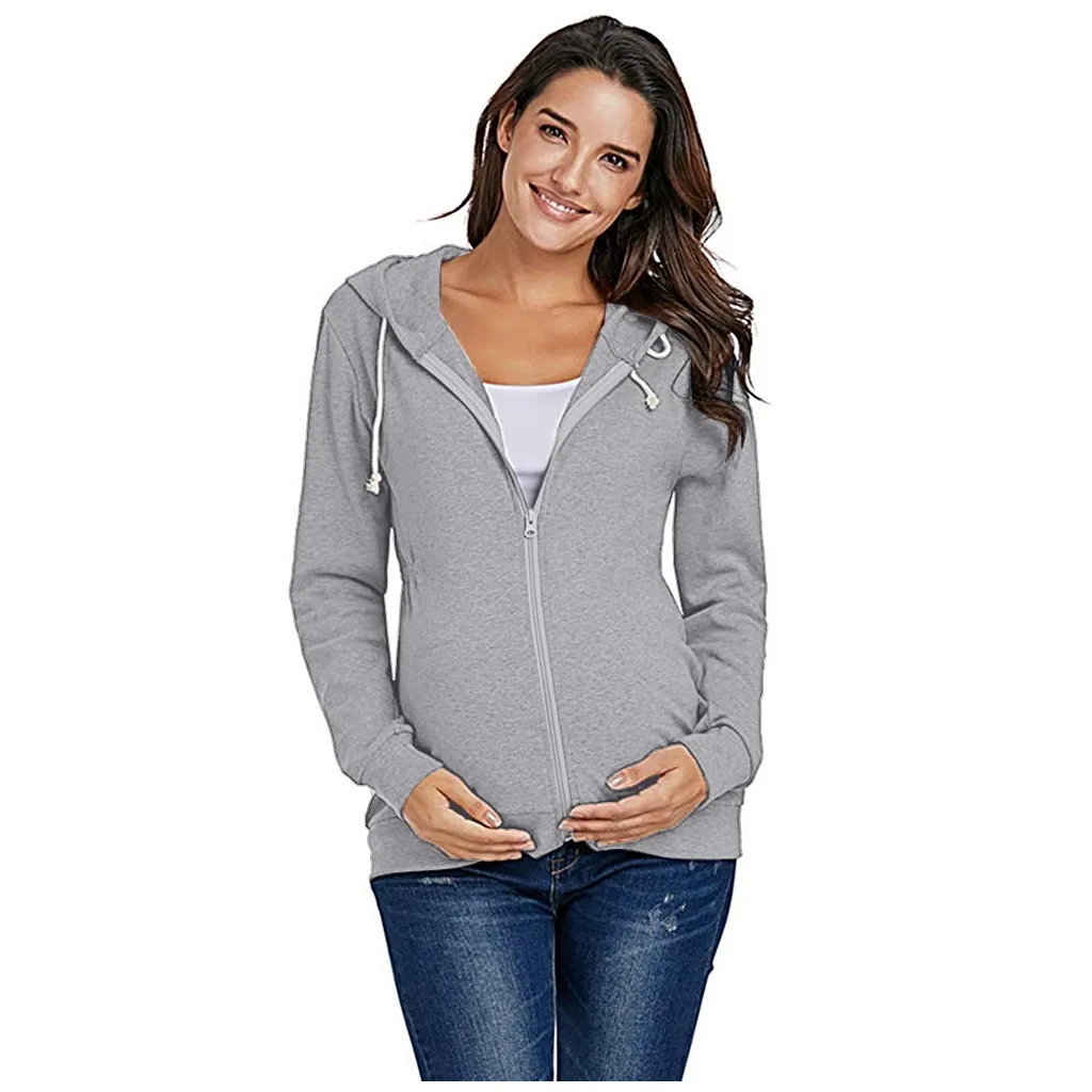 Women's Maternity Zipper Nursing Hoodie Sweatshirts Tops For Breastfeeding