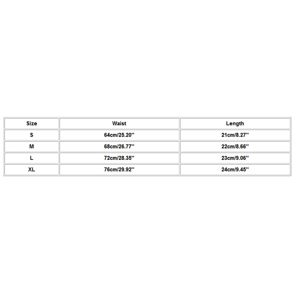 Размер: S Талия: 64 см/25,20 дюйма Длина: 21 см/8,27'' Размер: M Талия: 68 см/26,77 дюйма Длина: 22 см/8,66'' Размер: L Талия: 72 см/28,35 дюйма Длина: 23 см/9,06'' Размер: XL Талия: 76 см/29,92 дюйма Длина: 24 см/9,45''