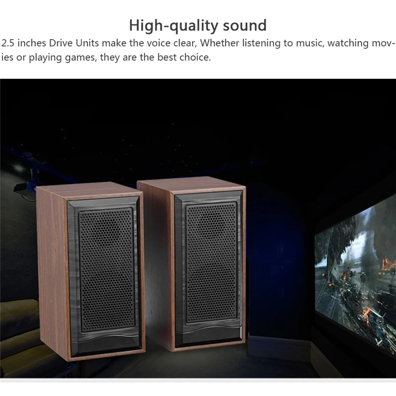 Всегда обеспечивает высокое качество продукции-корпус из натурального дерева, модный и классический. Качественный звук-2,5 дюйма приводов сделать голос ясно, независимо от того, прослушивания музыки, просмотра фильмов или играть в игры, они являются лучшим выбором. Широкий спектр совместимости-3,5 мм аудио интерфейс ввода, подходит для настольных ПК, ноутбуков, мобильный телефон, MP3, MP4/MP5.
