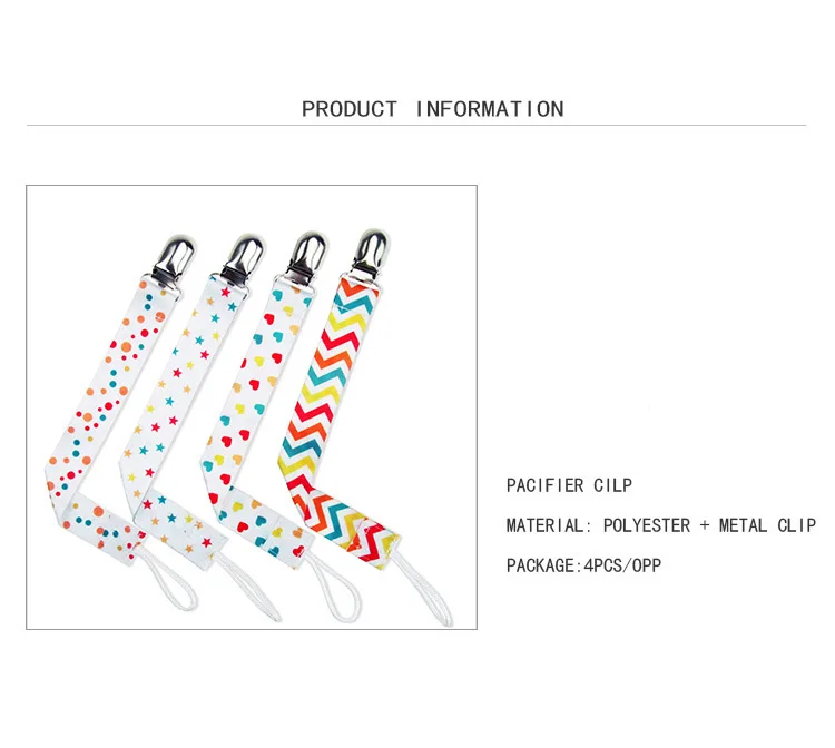 Новый 4 шт./компл. детская пустышка на цепочке с прищепкой, зажим Соска-пустышка на цепочке с модным принтом Забавная детская соска-пустышка ремень Прорезыватель для зубов соски-пустышки держатель зажим